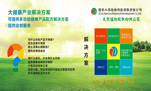 西安市小草植物科技有限責任公司成立于2004年,工廠位于西安市周至縣集賢工業區,辦公室位于西安高新區,一家具有進出口權的技術型民營企業。